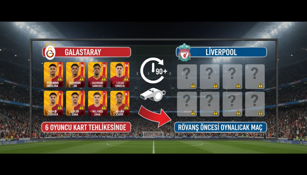 Galatasaray, UEFA Şampiyonlar Ligi son 16 turu rövanş maçında 18 Mart 2026 akşamı saat 23.00’te Anfield Stadı’nda Liverpool’ü ağırlayacak. İlk maçta 1-0’lık galibiyetle avantaj sağlayan sarı-kırmızılılar, turu geçerse çeyrek finalde PSG veya Chelsea gibi devlerle eşleşecek. Bu kritik mücadele öncesi Uğurcan Çakır, İsmail Jakobs, Abdülkerim Bardakcı, Roland Sallai, Victor Osimhen ve Noa Lang sarı kart sınırında bulunuyor. Bu oyuncular Liverpool karşısında kart görürse, çeyrek finalde forma giyemeyecek ve takımın planlarını altüst edebilecek.